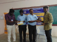 Appreciation of Students by Dr. Chinnadurai Abdullah, Correspondent and Dr. P. Marimuthu, Principal and Dr. S. Karthikeyan, HOD, Mechanical Engineering who have won best Paper award in Institution of Engineers Madurai Chapter