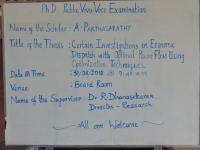 Ph.D Viva Voce held on 31.08.2018 under the supervisor-ship of Dr. R. Dhanasekaran Director - Reserach